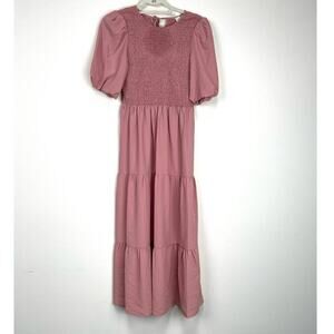 WAYF Camden Smocked Puff Sleeve Tiered Maxi Dress Size:XS