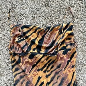 NWT WAYF Cowl Neck Side Ruche Tiger Print Dress Size L Glam Modern Luxe Cocktail