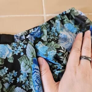 New with Tags! WAYF Floral Square Neck Cut Out Back Smocked Back Peplum Cropped Top Size Large, Lined, Sheer Long Sleeves with Elastic Cuffs, Elastic Waist, Blue Roses Print, 100% Polyester. boho, fairy, whimsigoth, romantic