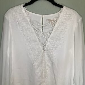 NWT WAYF Laced V-Neck Embroidered Blouse Size Small Light Fairy Goth