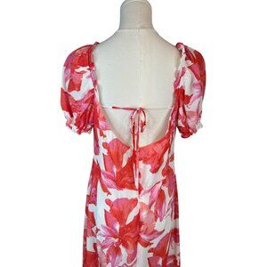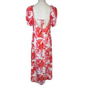 NWT WAYF Large Floral Print Maxi Dress Puff Sleeves & Tie Neckline