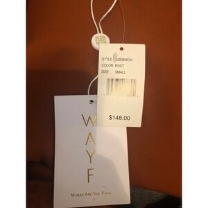 NWT WAYF Rust Cutout Midi Evening Dress Long Sleeve V Neck Bronze Copper Small