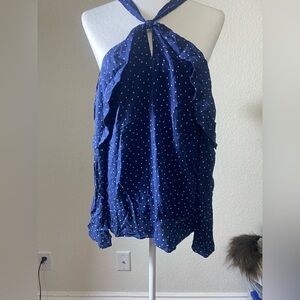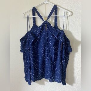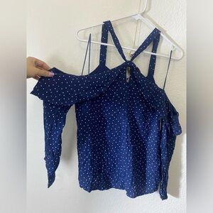 NWT WAYF SZ M Polka Dot Navy Blue Off Shoulder Blouse
