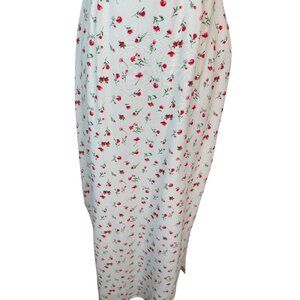 strapless midi dress, floral print dress, red white dress, smocked back dress, summer dress, casual midi dress, Wayf dress, viscose blend dress, dry clean dress, S size dress, ruched bustline dress, polyester blend dress, sleeveless floral dress, Easter, banquet, dinner, date, bar mitzvah