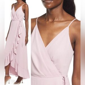 NWT WAYF | The Casey Dusty Pink Wrap Front Ruffle Gown XS