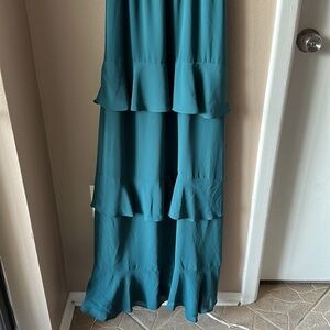 NWT WAYF Tiered Teal Green Ruffle Maxi Dress