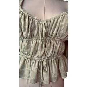 smocked crop top, peplum top, sage green top, puff sleeve blouse, elastic waist top, WAYF womens top, floral print blouse, lightweight top, casual wear top, peplum crop top, chic womens blouse, summer crop top, breathable blouse, Delicate, Romantic, sexy, girly, feminine, whimsical, fairy, sweetheart neckline