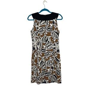 NWT WD.NY Brown Black Leaf Scroll Print Embellished Neckline Sheath Dress