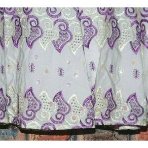NWT WDNY White & Purple Embroidered Skirt Size 4 Sequin A-Line Gypsy Playful
