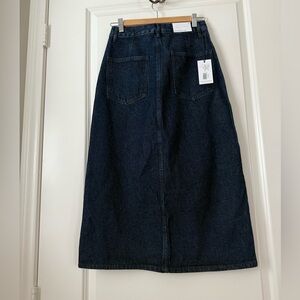 NWT WE WORE WHAT Cotton Denim Midi Skirt Small Dark Blue Wash