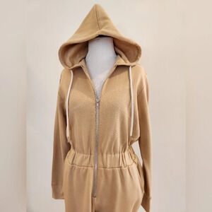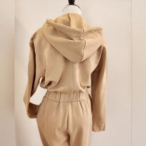 New with tags WE Wore What Leisure suit in size extra small. This is fleece, with a relaxed fit. It has a stretch waistband, with a hoodie and a full length zipper and cuffed ankles. Pockets at hips.