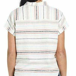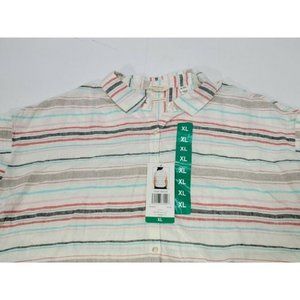 NWT (NEW WITH TAGS) WEATHERPROOF VINTAGE TIE FRONT STRIPED LINEN TOP SIZE XL. COLOR IS CALLED RIO RED.