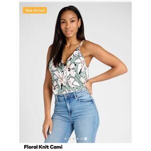 NWT WEST K Floral Knit Cami Wrap Front top in Green Floral - Women's size Medium