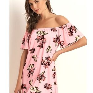 NWT WEST LOOP Dress Women's XL Tropical Pink Off The Shoulder Floral Boho Dress