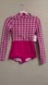 Color blocking knit jacquard houndstooth top with a vibrant magenta boy short bottom. This long sleeved one-piece provides ultimate sun protection while still giving fashion. Zips up in back with a long zipper pull just like wet suits.