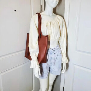 NWT WEWOREWHAT Women's Cream Colored Babydoll Crop Top Blouse Size XS