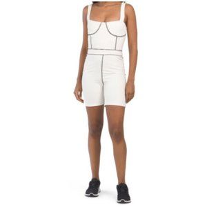 NWT WEWOREWHAT X Revolve Women's Corset Piped Bodysuit Off White Large