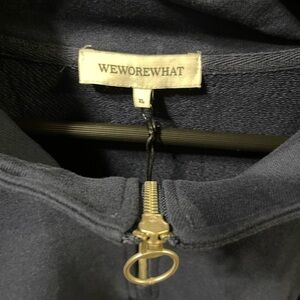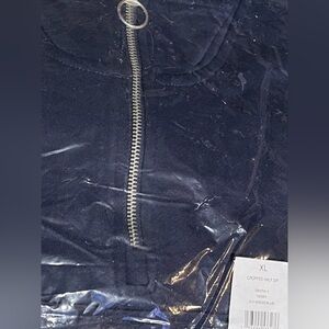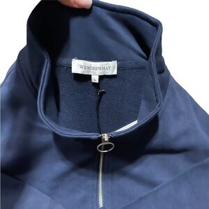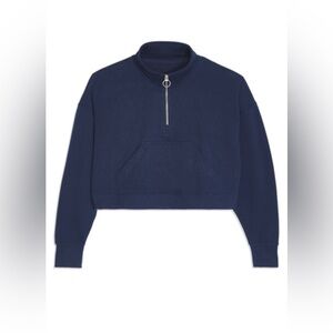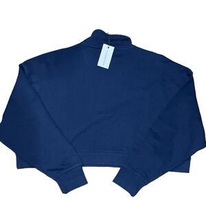 NWT WEWOREWHAT cropped Knit half zip Sweatshirt in Midnight Blue Size XL Womens