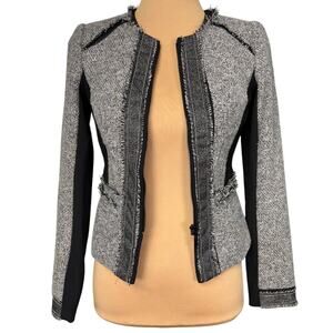 NWT WHBM Belle Tweed Moto Jacket Black White Size 00