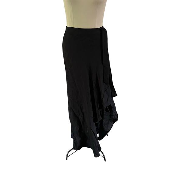 NWT WHBM Black Linen Ruffled Wrap Maxi Skirt Sz 4 Thigh Slit Resortwear Cruise