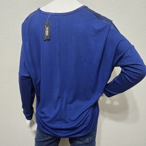 NWT WHBM Blue Woven Long Sleeve Tee Size S
