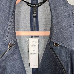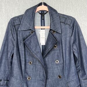 NWT WHBM Denim Dark Wash Cotton Blend Double Breasted Swing Jacket Sz 8 Preppy