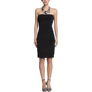 White House Black Market Slimming Strapless Ponte Bandage Sheath Black Dress 2