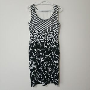 NWT WHBM Sleeveless Mixed Print Sheath Dress Size 8 White Black Style 570106517
