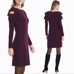 NWT WHITE HOUSE BLACK MARKET Cold Shoulder Ruffle Longsleeve Dress