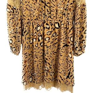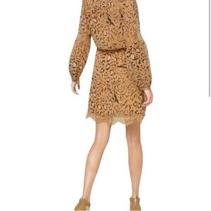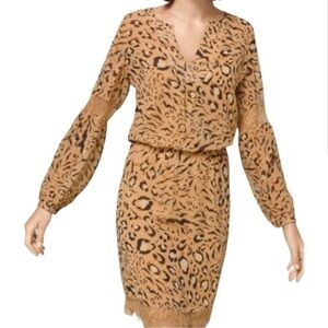 NWT WHITE HOUSE BLACK MARKET Lace-Trim Dress With Abstract-Animal Print Sz M