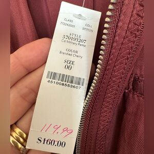 NWT WHITE HOUSE BLACK MARKET Utility Jacket Maroon Brandied Cherry Size 00 XXS