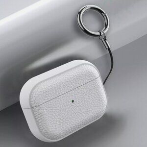 NWT (New with Tags) WHITE Textured Silicone Case for Apple Airpods Pro. Color: WHITE. Fits Airpods Pro (1st Generation). Hard silicone, not sticky. Comes with a lanyard and silver keychain.