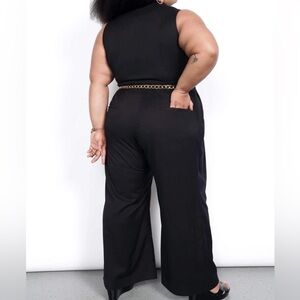NWT WILDFANG THE EMPOWER HIGH WAISTED V-NECK JUMPSUIT wide leg black size 24W