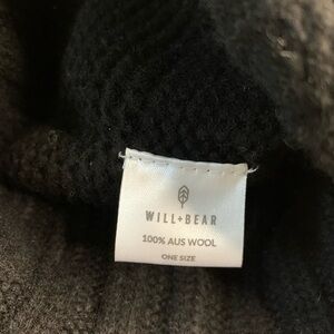 NWT WILL+BEAR DOC Women Men 100% Australian Wool Beanie Hat Black
