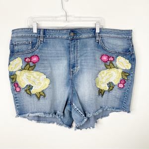 NWT WILLIAM RAST Embroidered Floral Studded Denim High Rise Sunny Duos Sz. 24W