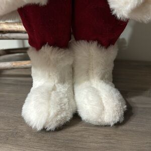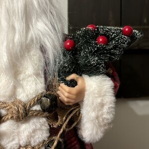 NWT WINTER WONDER LANE FAUX FUR PLAID SANTA WITH BOTTLE BRUSH TREE & BURLAP SACK