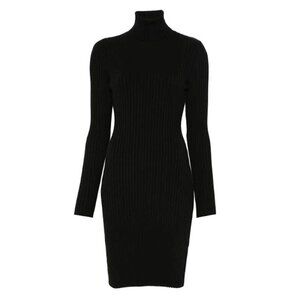 NWT WOLFORD Black Wool Blend Ribbed Turtleneck Dress Size Large