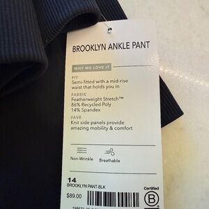 NWT WOMENS ATHLETA BROOKLYN BLACK PANT w/POCKETS SIZE 14
