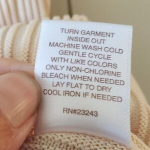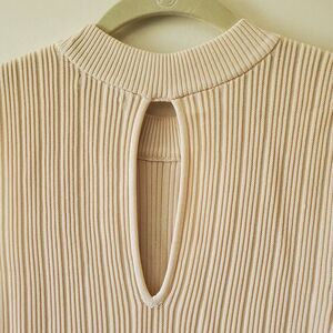 Classic elegance. Elevate your wardrobe with this stylish Eva Mendes sweater in a beautiful beige color. The sleeveless design and high neck with a keyhole cutout add a touch of sophistication to this versatile piece. The tight-knit ribbed accents and pull-on closure make it comfortable and easy to wear.