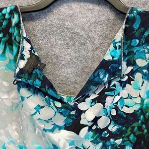 NWT WORTHINGTON Tank Top Women's 1X Blue Green Floral Sleeveless Pleated Keyhole