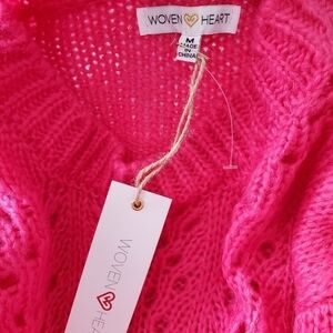NWT WOVEN HEART Open Stitch Hot Pink Sweater