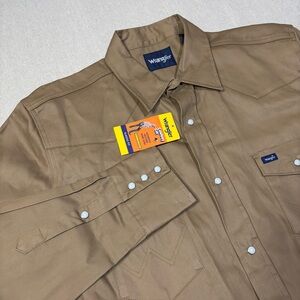 NWT WRANGLER Cowboy Cut Classic Fit Tan Pearl Snap Western Work Shirt Men's XLT See pictures for reference and measurements