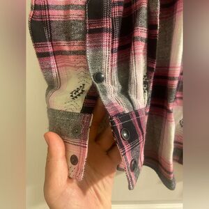BOYFRIEND FIT SNAP FLANNEL Sz S Pink