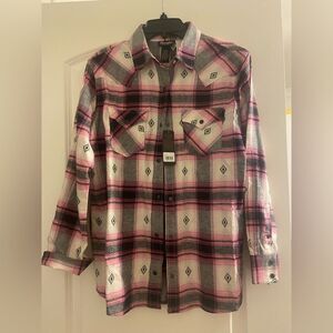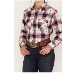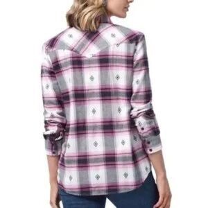 NWT WRANGLER RETRO WOMEN'S LONG SLEEVE BOYFRIEND FIT SNAP FLANNEL Sz S Pink