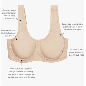 NWT Wacoal Women's Full Support Underwire Sport Bra, nude, 36DDD