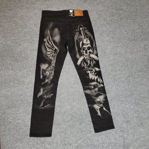 NWT Waimea Skinny Fit 36x32 (Meas 34x31 12" Rise) Death & Angels Tonal Jeans A17