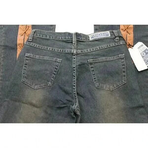 NWT Waist Size 29 Y2K Dark Wash Faux Suede Lace Up Flower Denim Flared Jeans Festival Boho