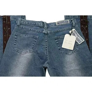 NWT Waist Size 29 Y2K Faux Suede Lace Up Flower Denim Flared Jeans Festival Boho