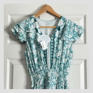 NWT Walker & Wade Zoey Dress Lagoon Print Turquoise Short Sleeve Shirred Waist