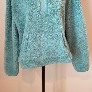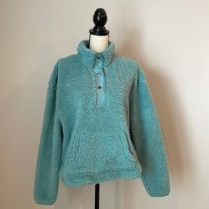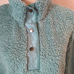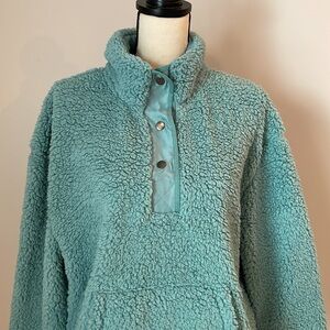 NWT Wallflower Sherpa Pullover Sweater SZ XL Teal Green 3/4 Button Front Soft